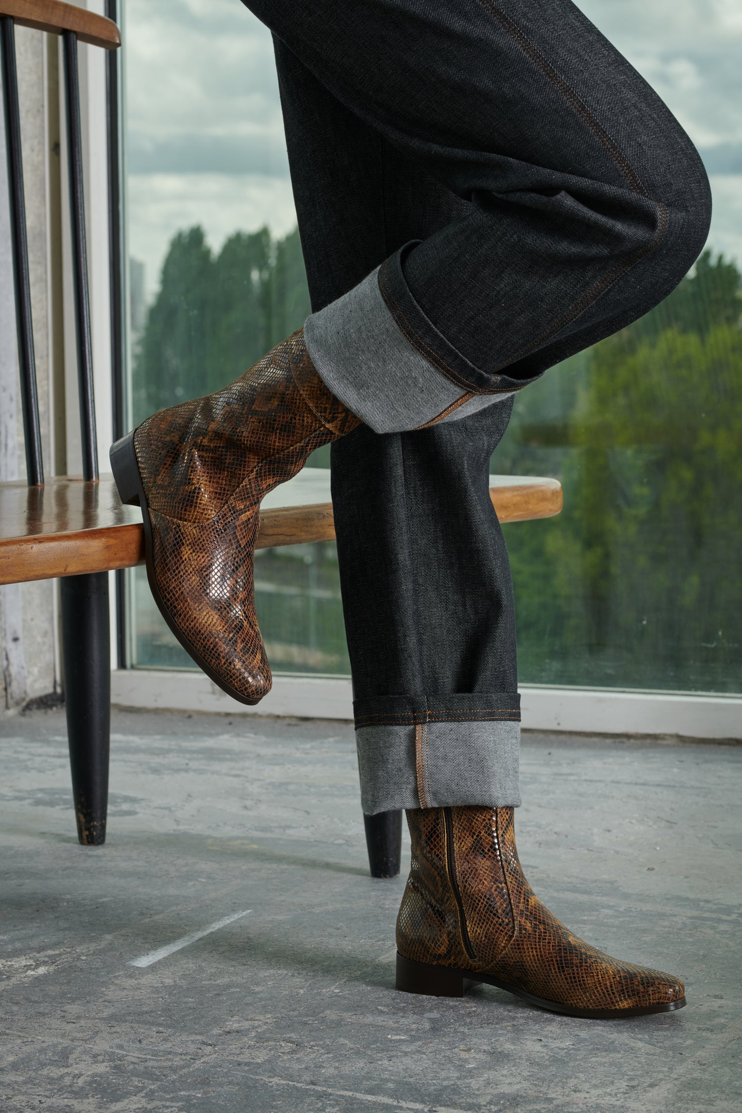 Python-style leather boots python