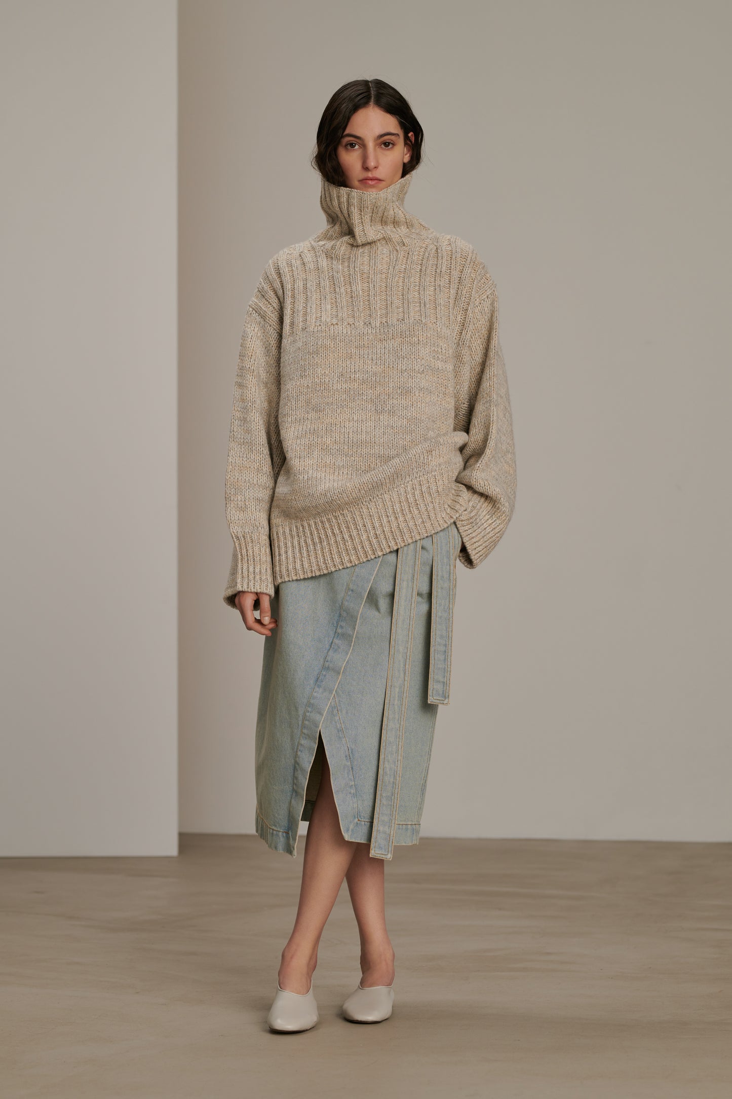 BLONDIE is a wrap denim skirt. Its elegant mid-calf length cut enhances the silhouette while providing comfortable freedom of movement.
