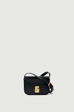 aube cardholder Black glazed leather cardholder with flap and "S" monogram