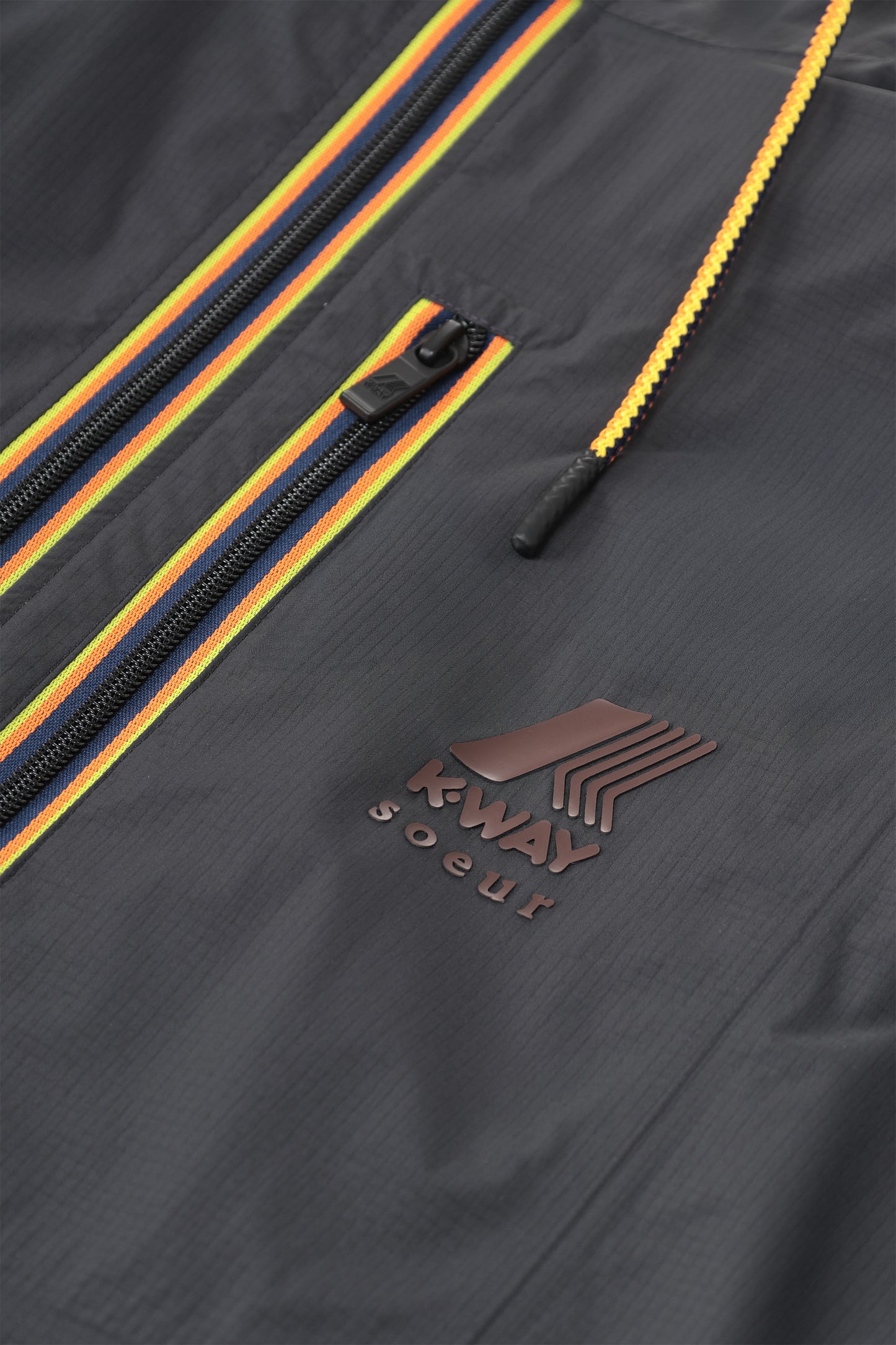 At the heart of this third collaboration, the 100% recycled nylon 2.1 Amiable, certified GRS (Global Recycled Standard), developed in the K-Way® workshops, extends technical expertise with a conscience. Its durability is reinforced by its Ripstop structure, which requires 40% less energy to manufacture than standard textiles. A lightweight, high-performance fabric designed for everyday use, it moves with the body without ever hindering it.